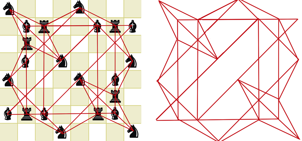 И RobPratt дополнил решение: «С учетом дополнительных требований, что слоны атакуют только коней, кони атакуют только ладей, а ладьи атакуют только слонов, максимальное количество фигур оказывается равным 30».