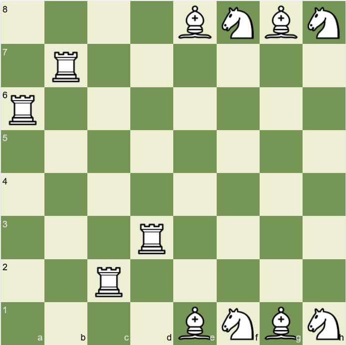 Можно по такому же круговому принципу расставить и четыре фигуры, добавив ферзя: ферзь → ладья → слон → конь → ферзь. Или использовать вместо ферзя пешку.