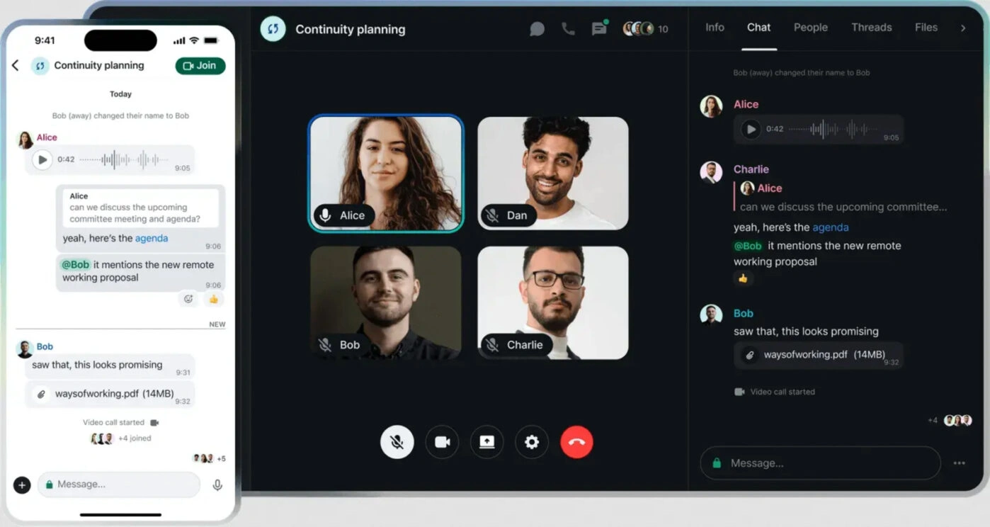 Пример интерфейса мессенджера Element. Источник: сайт element.io.