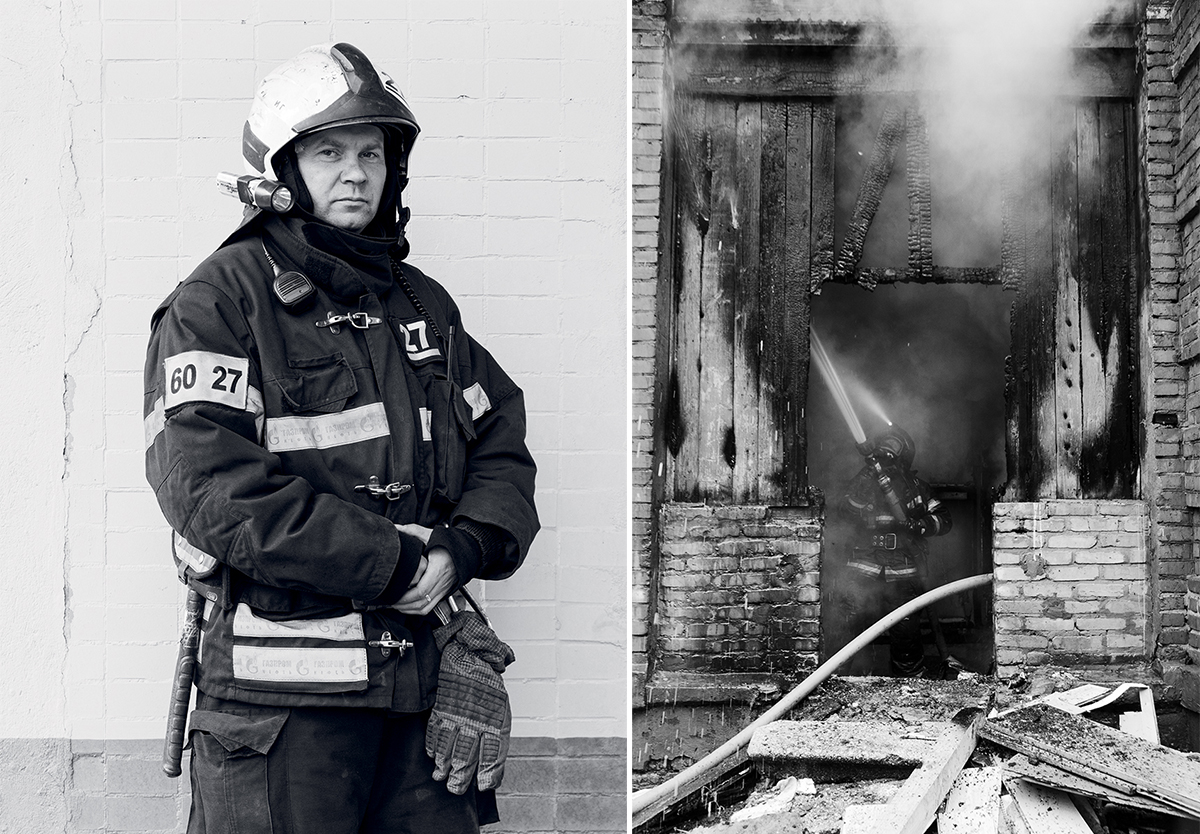 Слева: Илья Данилин. Справа: Николай тушит огонь, 12 мая 2024 годаФото: Дарья Калнина «С годами черствеешь. По-другому осознаешь это дело. О пожарной охране правду никогда никто не скажет, пока вы не поработаете в ней, пока вы не окунетесь туда. Ребята многого не скажут, потому что больно, страшно нам. Это наше внутреннее, пожарное».