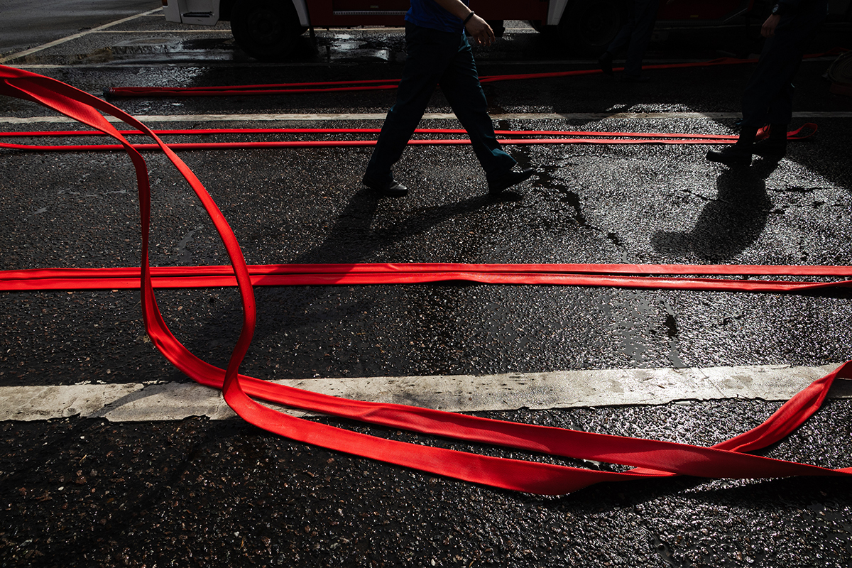День испытаний пожарных рукавов. Люберцы, апрель 2024Фото: Дарья Калнина Пожар. Горит жилое помещение. Секунда. Меняется все. Стремительный подъем. Сбор. Выезд меньше чем через минуту. Мы отправляемся.
