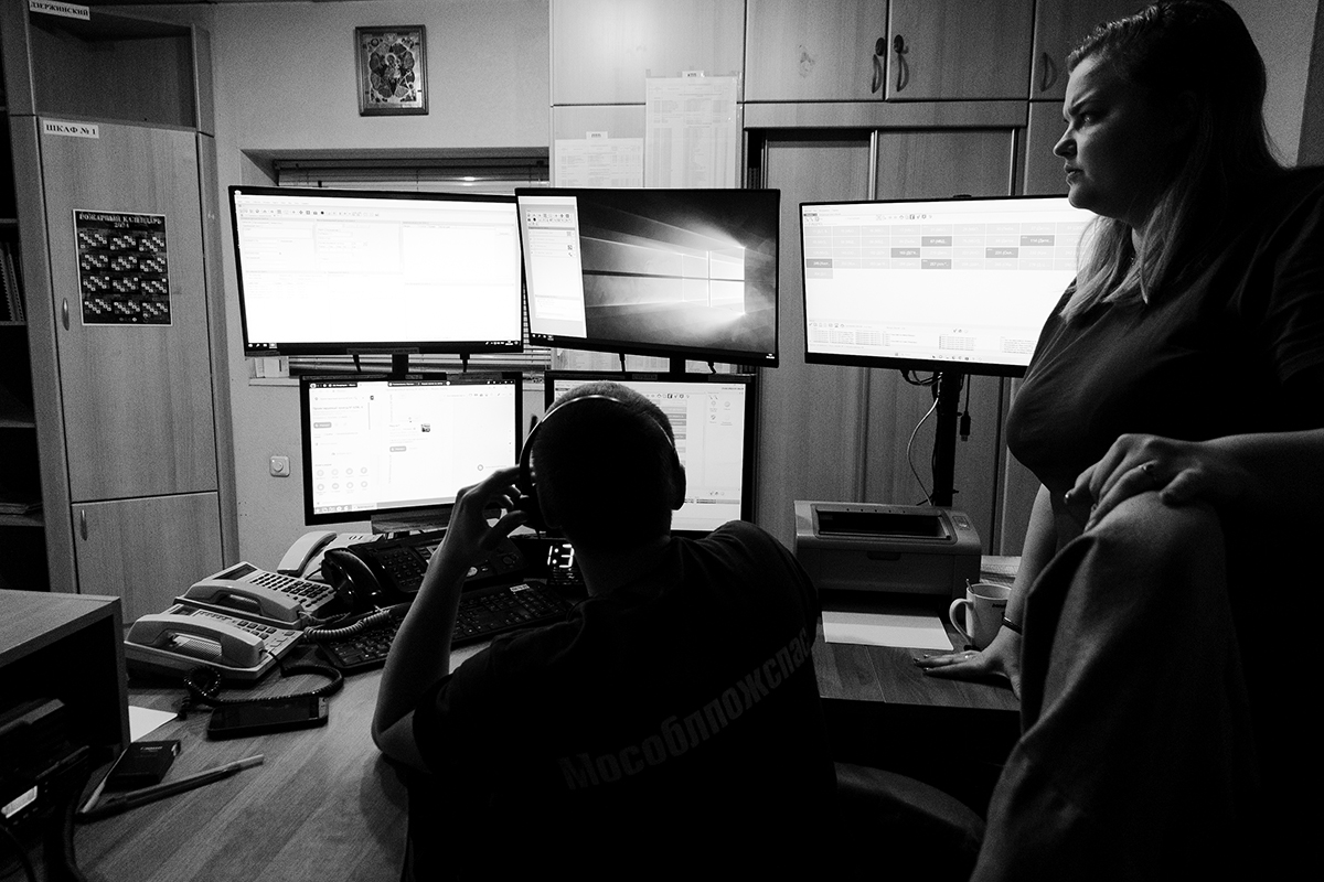 В диспетчерской. Маша и Николай принимают заявку. 23 февраля 2024 года, около двух часов ночиФото: Дарья Калнина
