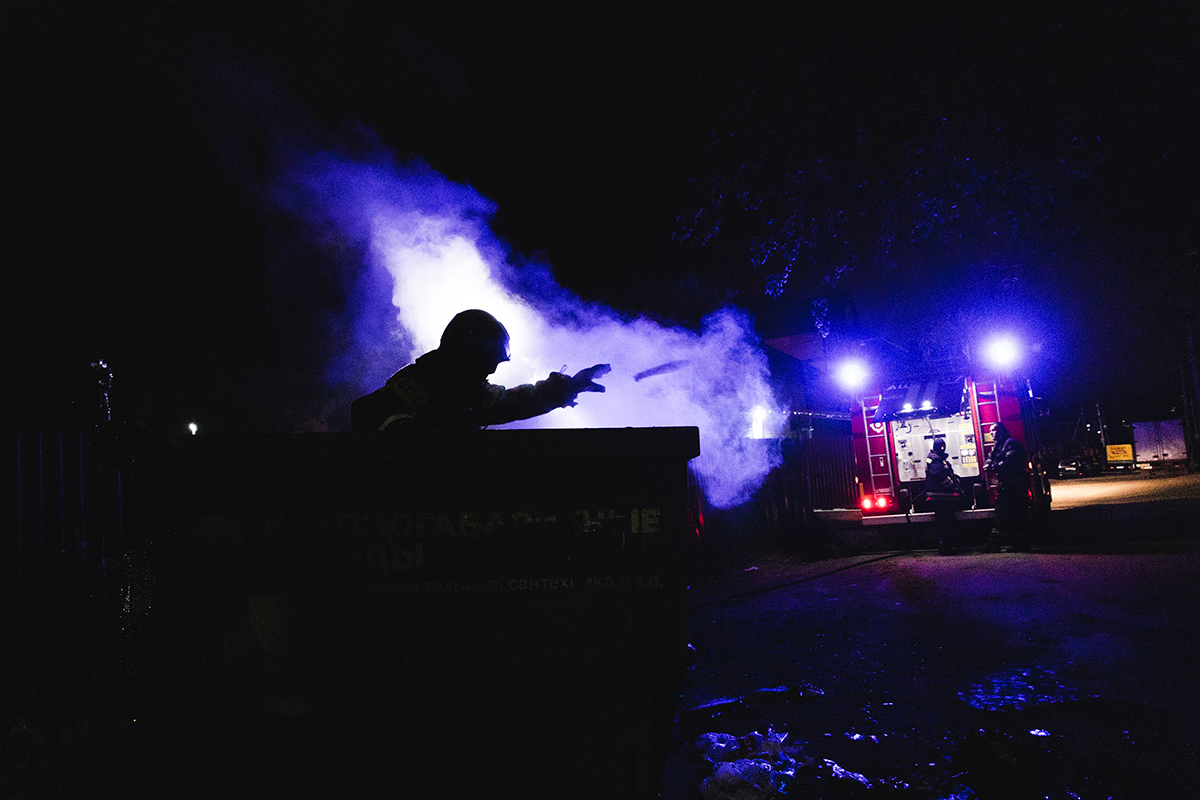 Николай тушит мусорку, май 2024 годаФото: Дарья Калнина Это огромный физический труд, опасная работа и каждый раз преодоление — усталости, температуры, дыма. Дыма, который, несмотря на всю защиту, разъедает глаза, дерет гортань и проникает во все поры. Это преодоление очередного рубежа, открывающего в людях новые грани, стирающие само понятие предела. Двух одинаковых пожаров не бывает, и даже если горит гора мусора, каждый раз она горит по-разному. Огонь — коварная и непредсказуемая стихия.