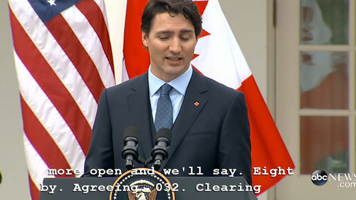 Диктор телеканала ABC положился на компьютерную программу, которая должна была в реальном времени переводить речь Трюдо с французского на английский. Программа дала сбой и начала обрабатывать французскую речь так, будто это был английский язык.