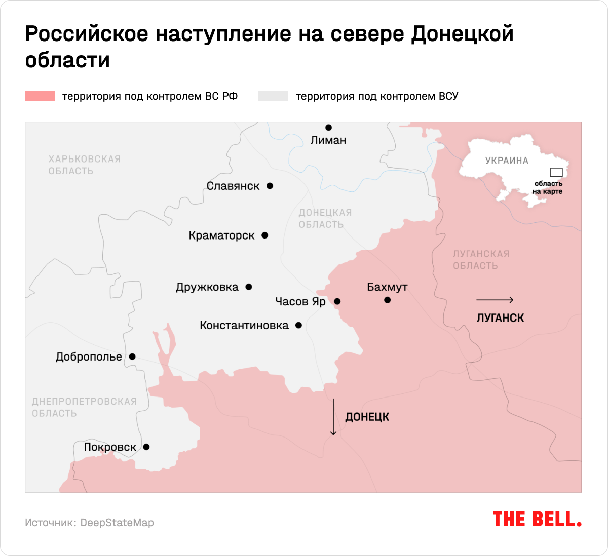 Покровск-Доброполье и Часов Яр — два главных направления движения российских войск с юга в сторону агломерации Краматорск-Славянск, то есть военному, административному и экономическому центру подконтрольной Украине части Донбасса. Российское наступление угрожает Краматорску и Славянску и с юга, и с севера.