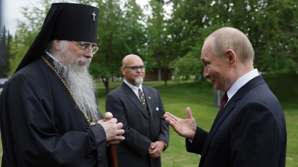 Архиепископ Алексий (Трейдер) — коренной американец из штата Делавэр, ему 64 года. Будучи сыном методистского пастора, в юности он перешел в православие и почти сразу стал монахом Свято-Тихоновского монастыря в Пенсильвании. Неофитская ревность толкала его к еще большим подвигам, и в 30-летнем возрасте будущий архиепископ уехал на Святую гору Афон — в монашескую республику на севере Греции. Там, в монастыре Каракалл, он принял великую схиму и был рукоположен в священный сан. Вернувшись в Америку по предписанию врачей, в 2020 году в Вашингтоне был рукоположен во епископа ПЦА, а спустя еще два года — назначен управляющим Аляскинской епархией, которая объединяет почти 90 приходов и миссий, бережно храня «русское духовное наследие» на Аляске. Архиепископ Алексий часто в проповедях и интервью подчеркивает свою любовь к России. Лично Путину на кладбище он передал «признательность коренного населения Аляски лидеру той страны, которая направила когда-то сюда миссионеров. Потому что Россия подарила нам то, за что мы наиболее признательны, что-то наиболее ценное». Очевидно, иерарх имел в виду православие.