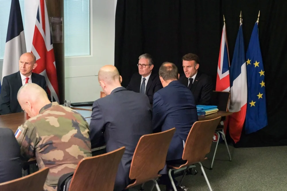 Премьер-министр Великобритании сэр Кир Стармер и президент Франции Эммануэль Макрон проводят встречу «Коалиции доброй воли». Фото: Leon Neal / PA Wire/PA Images / Scanpix