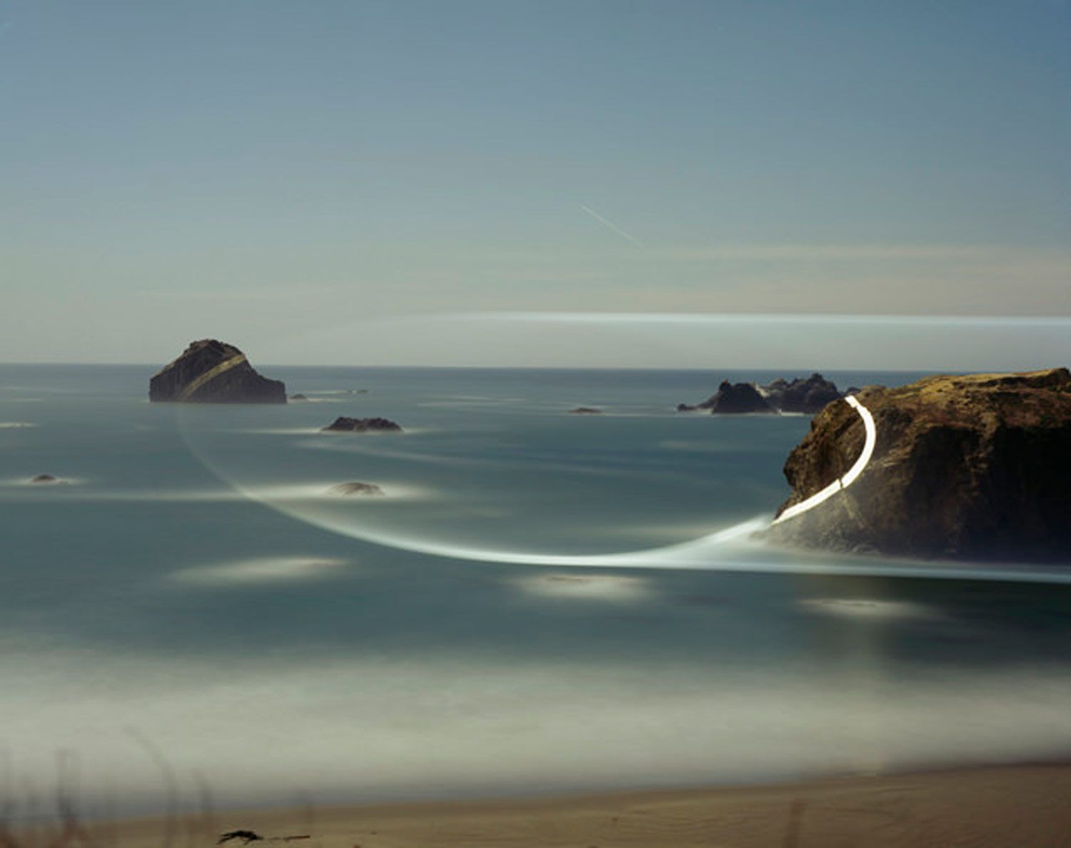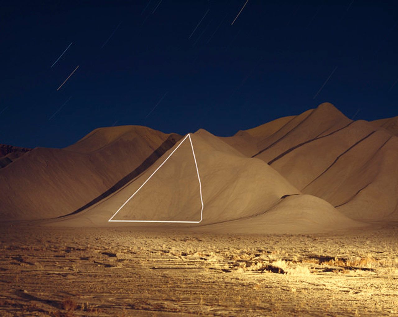 К середине 1990-х годов работа над тайными силами человечества истощила Сэнборна, и он отправился на запад США. Его вдохновляли такие художники, как Роберт Смитсон и Джеймс Таррелл, для которых открытая местность была средством самовыражения. Но Сэнборн возражал против физического манипулирования первозданным миром. Поэтому он использовал мощный, изготовленный на заказ проектор, который мог создавать изображение на расстоянии в четверть мили (около 400 метров). Если холм смутно напоминал куб, художник проецировал на него идеальный куб, а если выглядел как треугольник, он проецировал на него идеальный треугольник — «чтобы вспомнить изначальный кристаллический ландшафт, который я представлял». Единственное свидетельство того, что эти его работы действительно существовали, — широкоформатные фотографии, сделанные самим Сэнборном.