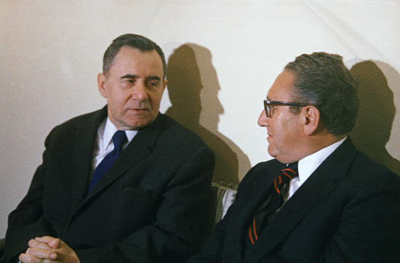 Министр иностранных дел СССР Андрей Громыко и госсекретарь США Генри Киссинджер на встрече в Женеве, 1975 год