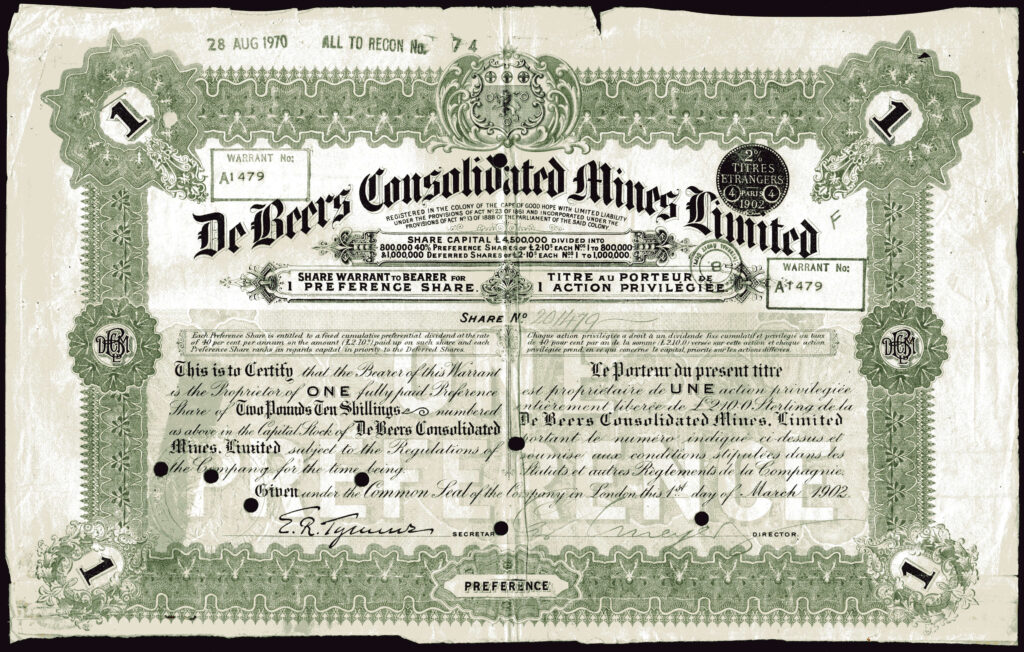 Вот, например, привилегированная акция 1902 года с эквивалентом 2,5 фунта стерлингов (в пересчете на сегодня это примерно 337 фунтов или 400 евро).