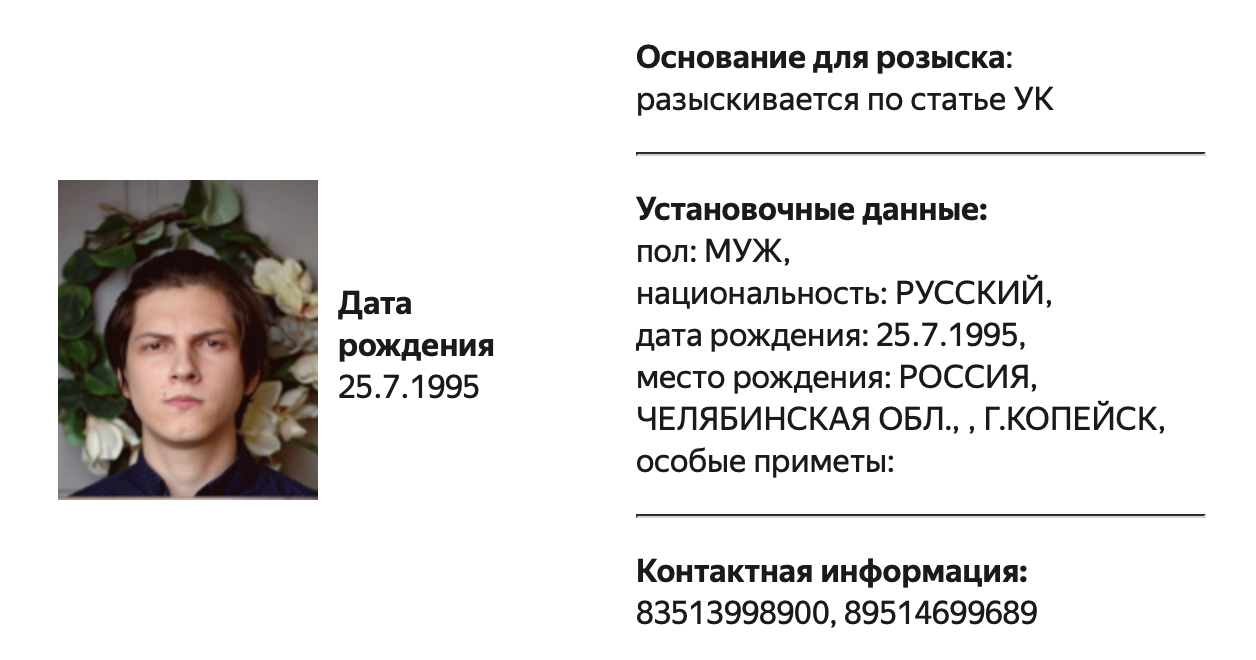 В базу федерального розыска на сайте МВД добавили блогера Антона Пикули (Антона Устимова), заметила «Медиазона».