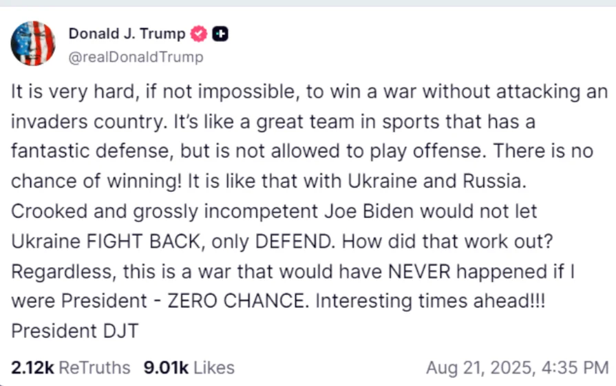 Президент США Дональд Трамп опубликовал днем в четверг серию постов в своей соцсети TruthSocial по поводу России и Украины.