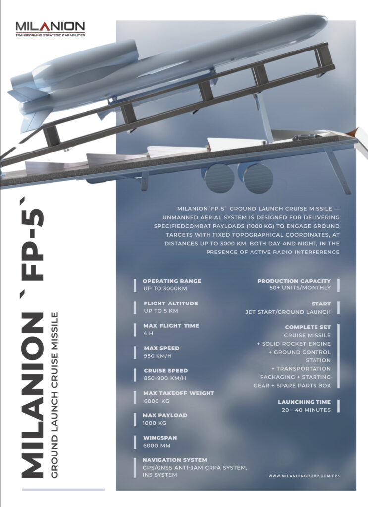 Как сообщает специализированное украинское издание Defence Express, «Фламинго» — это ракета FP‑5 разработки Milanion Group: основанной в 2020 году и зарегистрированной в ОАЭ частной компании. Milanion Group публично представила FP‑5 в 2025 году на оборонной выставке IDEX в Абу-Даби. (Как поясняют в Fire point, первые ракеты были покрашены в розовый цвет, поэтому украинскую версию и назвали «Фламинго»).