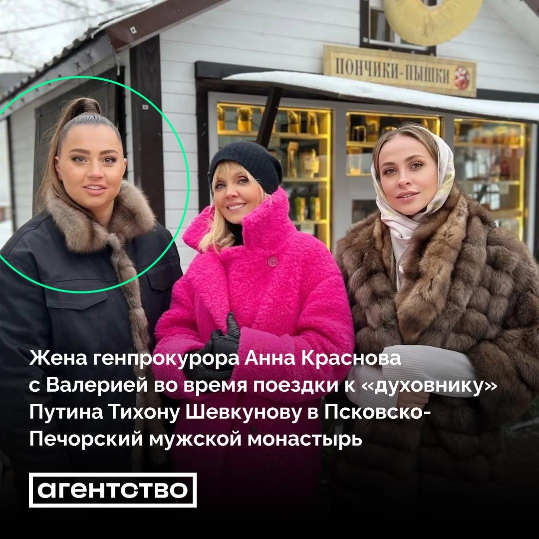 Стремительную карьеру Краснова совмещает со светской жизнью. Она неоднократно появлялась на публике в компании певицы Валерии и ее мужа Иосифа Пригожина. В 2021 году Пригожин и Краснова оказались за одним столом на дне рождения Николая Баскова. А в 2023-м жена генпрокурора вместе со звездной парой ездила в Псковско-Печорский мужской монастырь. Фотоотчет Валерии из этой поездки свидетельствует, что вместе с ними в монастыре гостил «духовник Путина» Тихон Шевкунов и дирижер Валерий Гергиев.