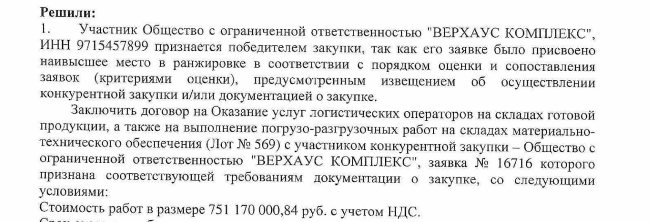 В 2023 году, как заметил «Проект», компания получила госконтракт на 751 млн рублей для оказания логистических услуг и погрузо-разгрузочных работ «Березниковскому содовому заводу».