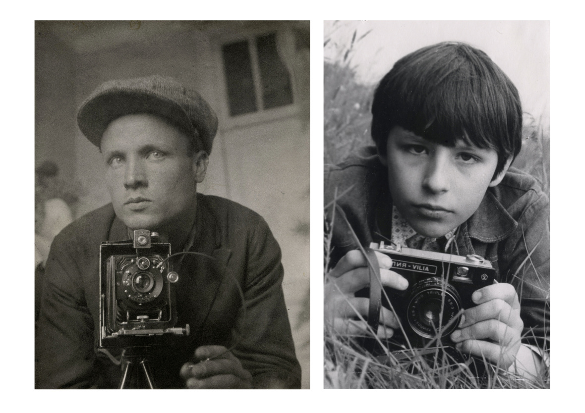 В начале и конце книги — автопортреты. То есть, конечно, на них другие, неизвестные нам, фотографы: мужчина 1920-х и мальчик 1980-х, с камерами. Но у них одинаковое выражение лица — им обоим любопытно, что происходит. Оба они — Максимишин.