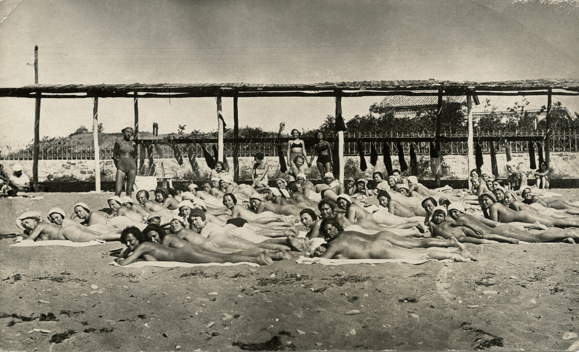 Десятилетие свободы — нудистки на пляже, две девушки держатся за руки. Максимишин: «Я когда торговался, там человек мне такую цену заломил, я пытался сбить, он говорит: "Ты представь себе, сколько стоит сделать фотографию? сколько стоит столько голых баб в Анапу вывезти?"»