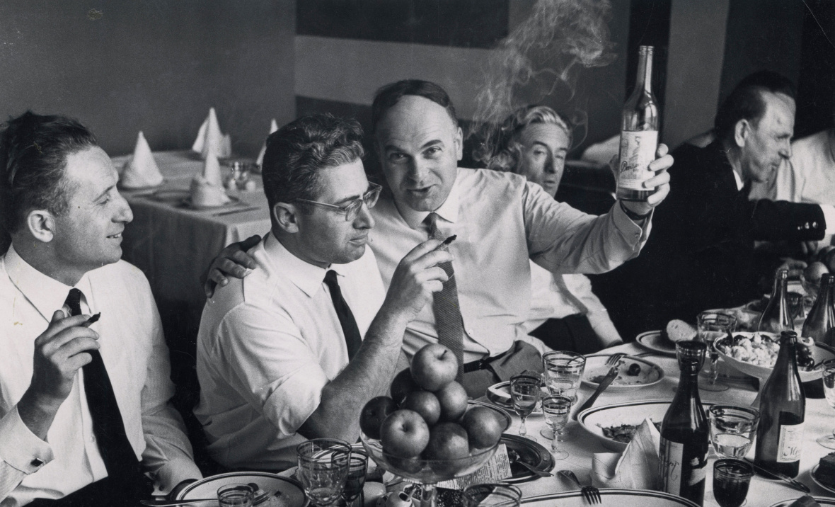 Банкет. В руках у человека бутылка «Столичной» «с винтом» — вещь статусная. Считалось, что водка в бутылках с отвинчивающейся крышкой идет на экспорт
