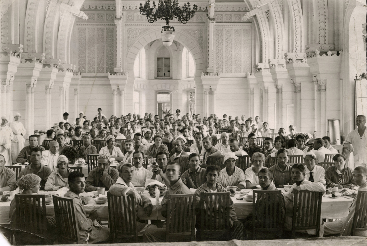 На вступительном кадре какие-то люди за длинными столами. Обедающие ненадолго обернулись к нам — фотограф попросил их посмотреть в объектив — для истории. Через полминуты он скажет: «Все, спасибо» — и они вернутся назад, в свой момент, к своим тарелкам и разговорам. Но сейчас они глядят в неведомое будущее, они мысленно с нами и что-то рассказывают о себе.