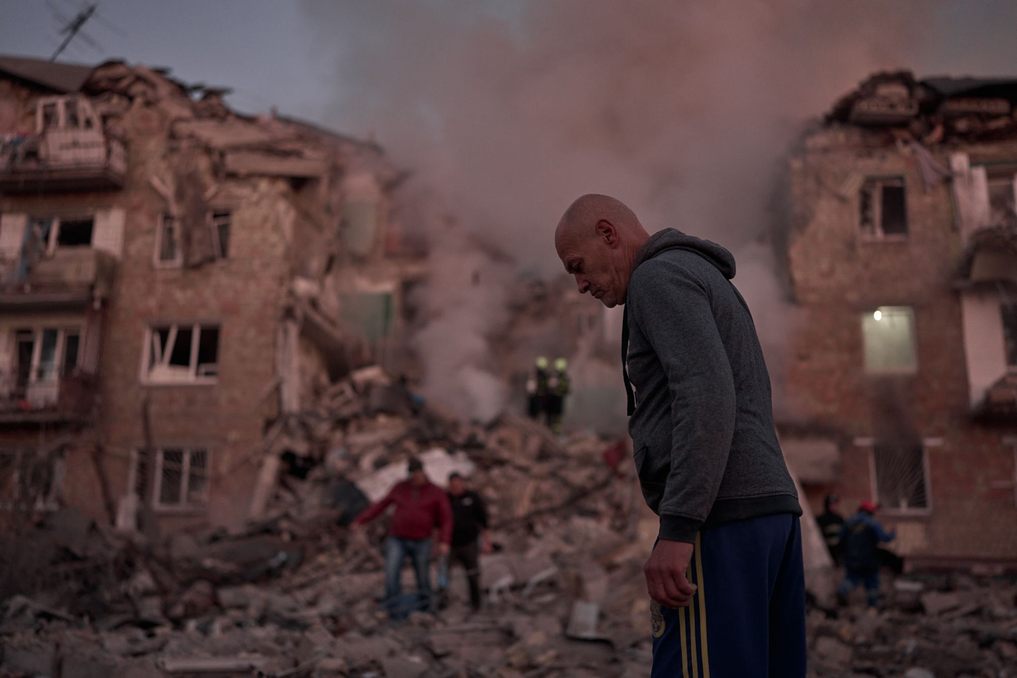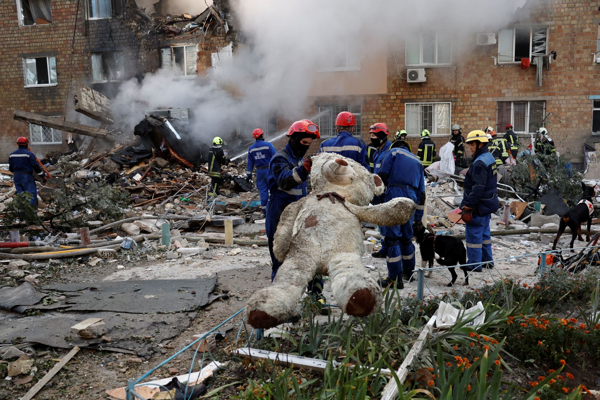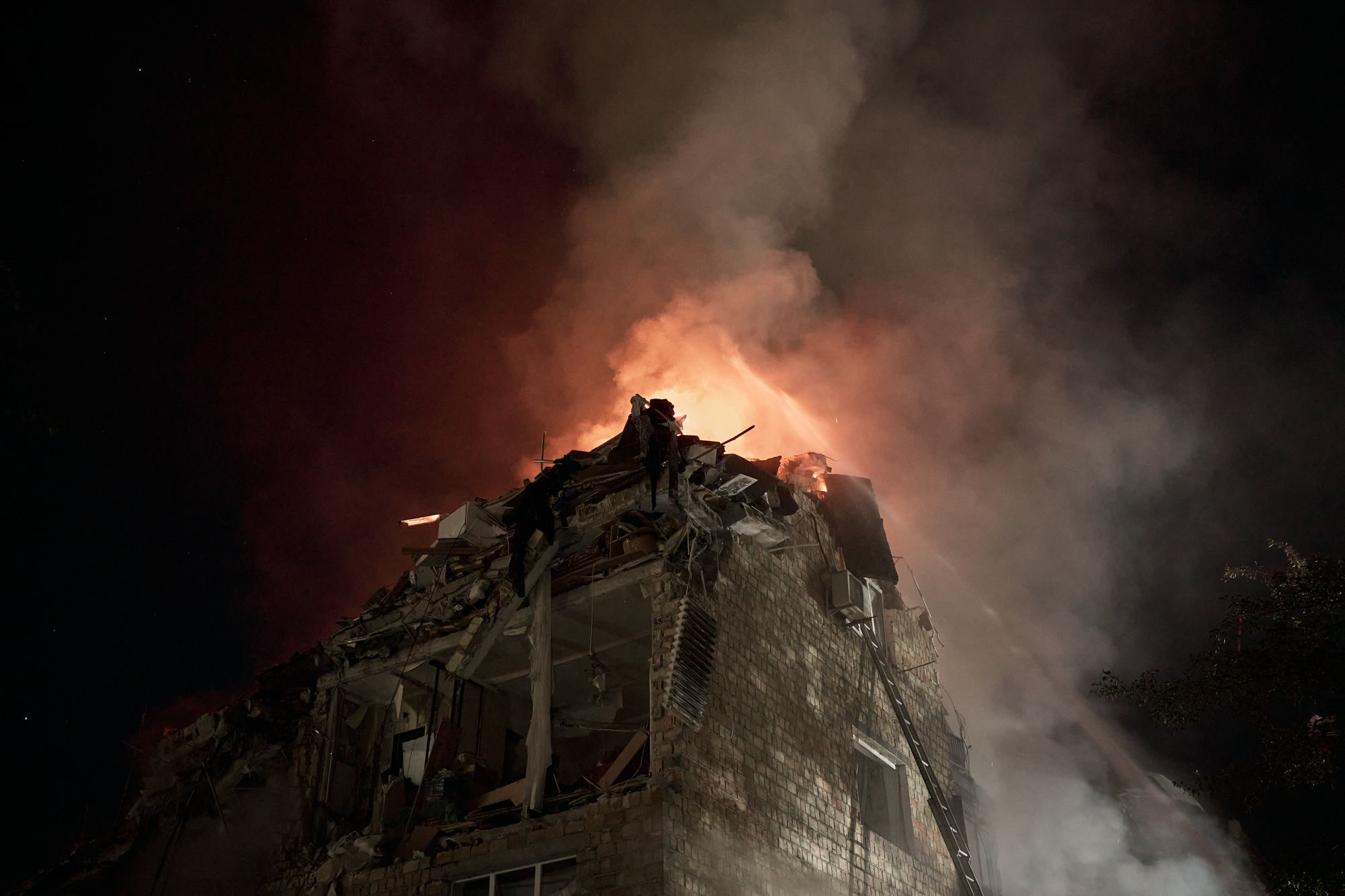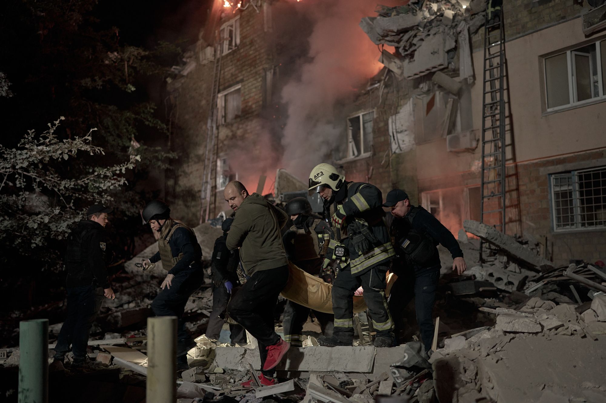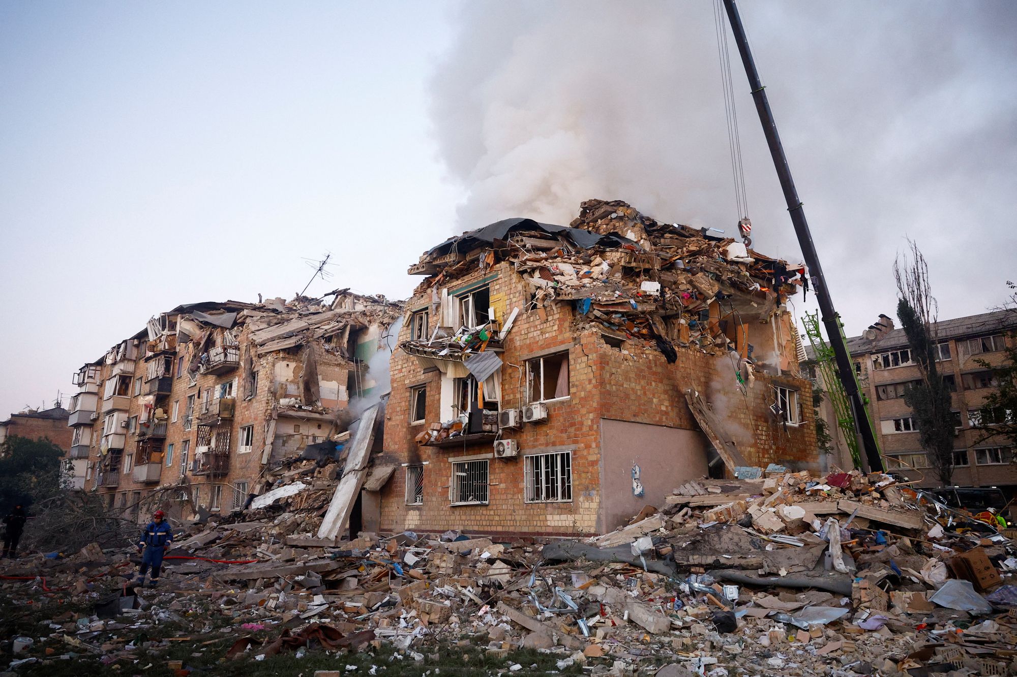 Вооруженные силы РФ нанесли массированный удар по Киеву в ночь на 28 августа. Одна из ракет попала в пятиэтажный жилой дом на улице Бориспольской в Дарницком районе, он почти полностью разрушен. По данным властей Украины на 12:19 утра, в Киеве погибли 16 человек, большинство из них — в Дарницком районе. Ранения получили десятки человек. Президент Украины Владимир Зеленский заявил, что Россия «выбирает баллистику, а не стол переговоров, выбирает продолжать убийства, а не заканчивать войну». В Киеве 29 августа объявили днем траура в память о жертвах российской атаки. Вот как выглядят последствия удара ВС РФ по Киеву.
