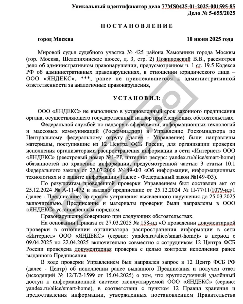 Как позже обратила внимание «Медиазона», тот же судья по фамилии Пожиловский ранее оштрафовал «Яндекс» по аналогичным протоколам, составленным из-за отказа компании предоставить ФСБ доступ к «Яндекс Локатору», «Яндекс Метрике», «Яндекс Мессенджеру», «Яндекс Маркету» и «Яндекс ID».Как уточняют «Осторожно, новости», всего за последний год мировые судьи районов Хамовники и Замоскворечье за год 42 раза оштрафовали «Яндекс» и его и его дочерние компании.