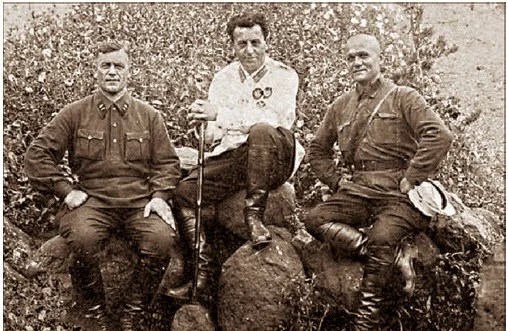 Обнаружили Гая в стогу сена со сломанной ногой (все-таки выпрыгнул из окна поезда! — П. Г.) не наши работники, а проходившие мимо сельский учитель и колхозник. Один из них побежал сообщать и по дороге встретил группу сотрудников органов из Москвы, возглавляемую М.П. Фриновским (впоследствии первым заместителем Ежова). Как потом рассказывали очевидцы, Фриновский подошел к лежащему Гаю, протянул ему руку и сказал: