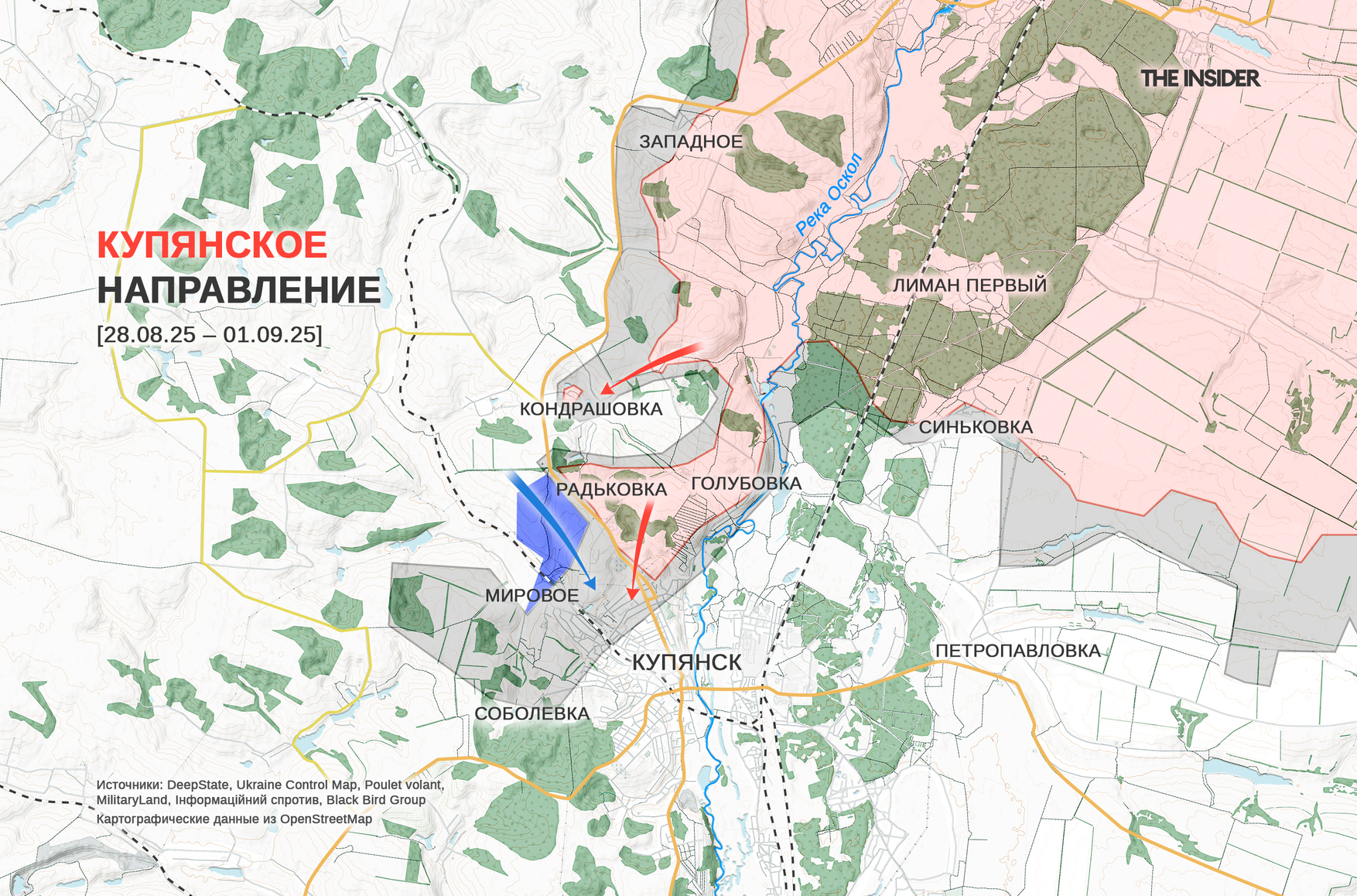 DeepState сообщает об освобождении села Мировое (до июня 2025 года — Московка) к северо-западу от Купянска. Эту информацию подтвердил представитель ОСГВ «Дніпро» Виктор Трегубов. Военный аналитик Ян Матвеев отмечает, что таким образом СОУ ликвидировали угрозу снабжению Купянска с запада.