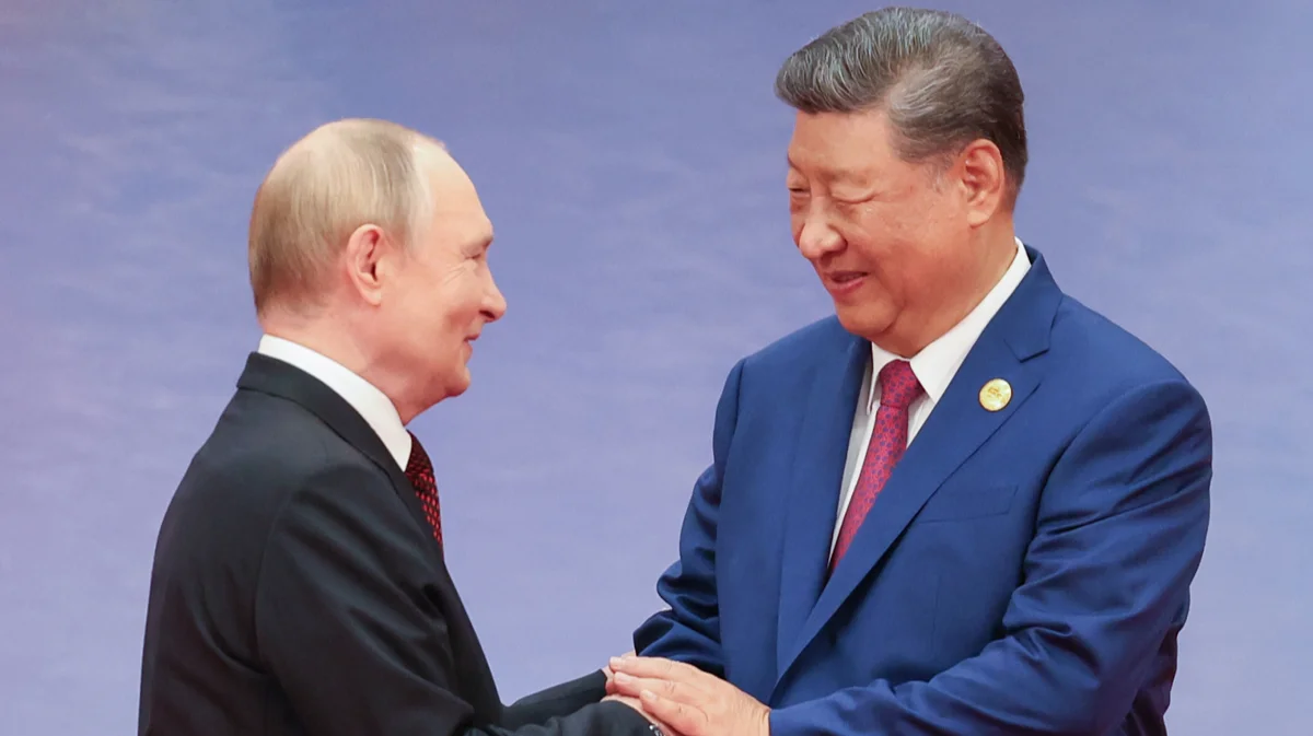 Владимир Путин и председатель КНР Си Цзиньпин жмут руки во время церемонии встречи глав государств Шанхайской организации сотрудничества в Тяньцзине, Китай, 31 августа 2025 года. Фото: Александр Казаков / Спутник / Kremlin / EPA