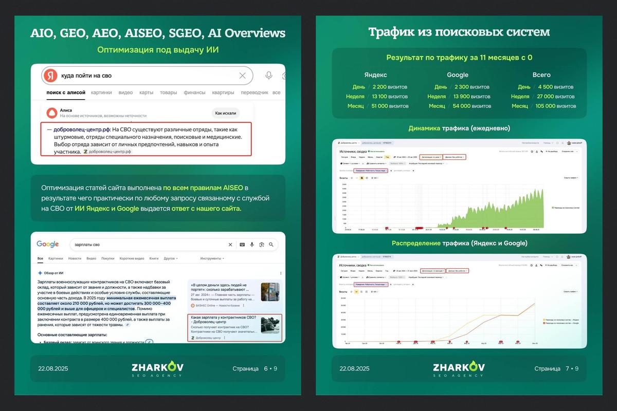 «SEO-кейс, от которого подгорит у каждого: как мы захватили весь поисковый трафик в самой жирной "темке"», — так Василий Жарков озаглавил свой пост во «ВКонтакте». В нем он утверждает, что спустя год работы его клиент, сайт «Доброволец-центр», ежемесячно получает 12,5 тыс. заявок от желающих подписать контракт. Больше половины из них, 7,5 тыс. человек, в итоге отправляются на фронт. Если верить этой цифре, через этот проект проходит до 25% всех новых контрактников: в 2024 году российская армия в среднем набирала от 30 до 35 тыс. человек в месяц. «Важные истории» не могут независимо проверить утверждение Жаркова.