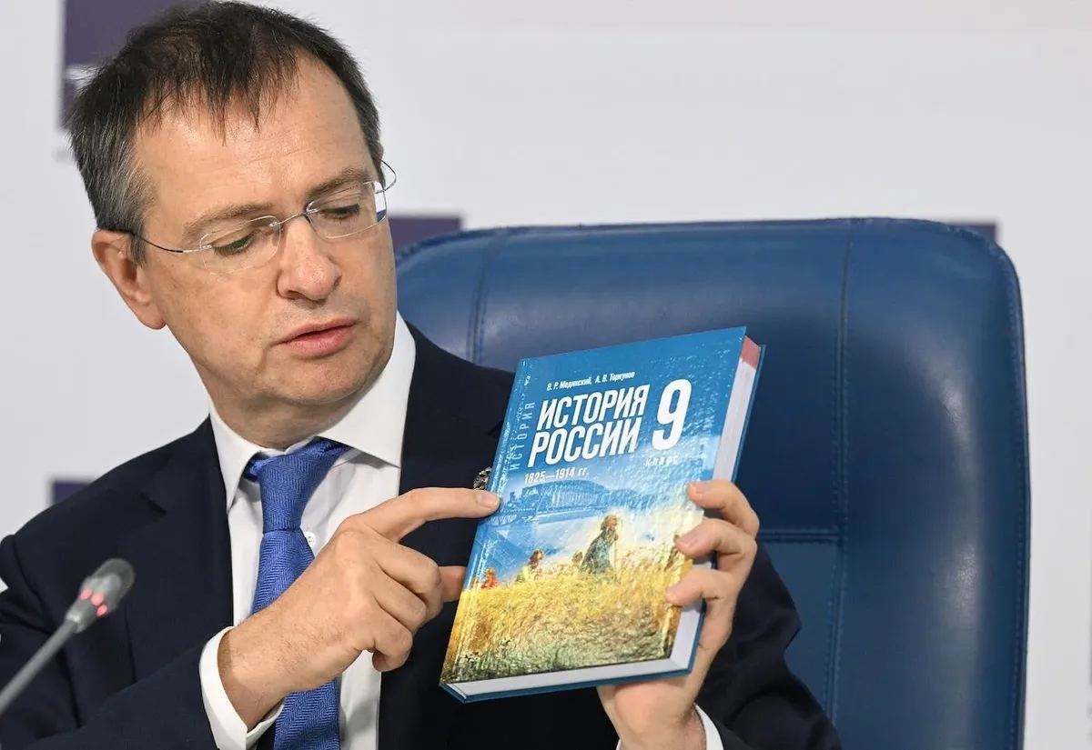 Самые первые и самые идеологически важные — это учебники истории. Коллектив авторов в составе Владимира Мединского, Анатолия Торкунова и Александра Чубарьяна выпустил учебники для 10–11-х классов в 2023 году, сейчас в школу поступят учебники для 5–9-х классов.
