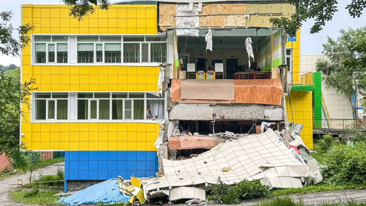 Петропавловск-Камчатский. Здание детского сада, обрушившееся в результате землетрясения. Фото: Валерия Косилова / ТАСС