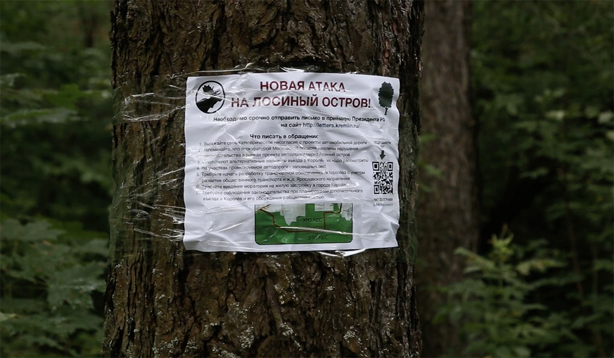 Одна из листовок на информационном щите содрана, но рядом уже висит новая — с цитатой Владимира Путина, который призывает беречь природу России. Именно к президенту в декабре прошлого года обратился журналист Дмитрий Маслак с просьбой решить проблему пробок в Королеве. Пути поручил вопрос губернатору Московской области Андрею Воробьеву, после чего и был принят проект о «капитальном ремонте дороги» через «Лосиный остров». Однако эксперты считают, что возведение автотрассы в нацпарке не решит транспортную проблему, разгрузив въезд в город лишь на 15-20%. Все альтернативные проекты министерство транспорта Московской области отклонило.