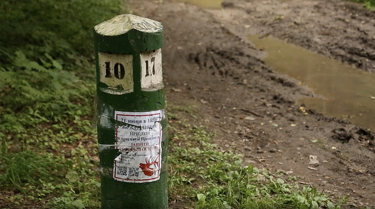 Мимо проезжает белый автомобиль с зелеными наклейками — госинспекция «Лосиного острова». Активисты пытаются его остановить, чтобы попросить инспекторов узнать о целях погрузки экскаватора, но безуспешно. Вспоминают, что в день появления неизвестных в масках в начале июля сотрудники нацпарка вообще не приехали на место столкновения, хотя люди звонили в администрацию.