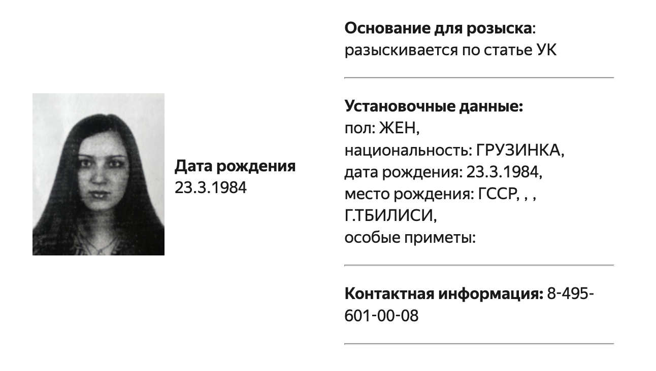 МВД объявило в розыск журналистку «Дождя» Екатерину Котрикадзе, заметила «Медиазона».