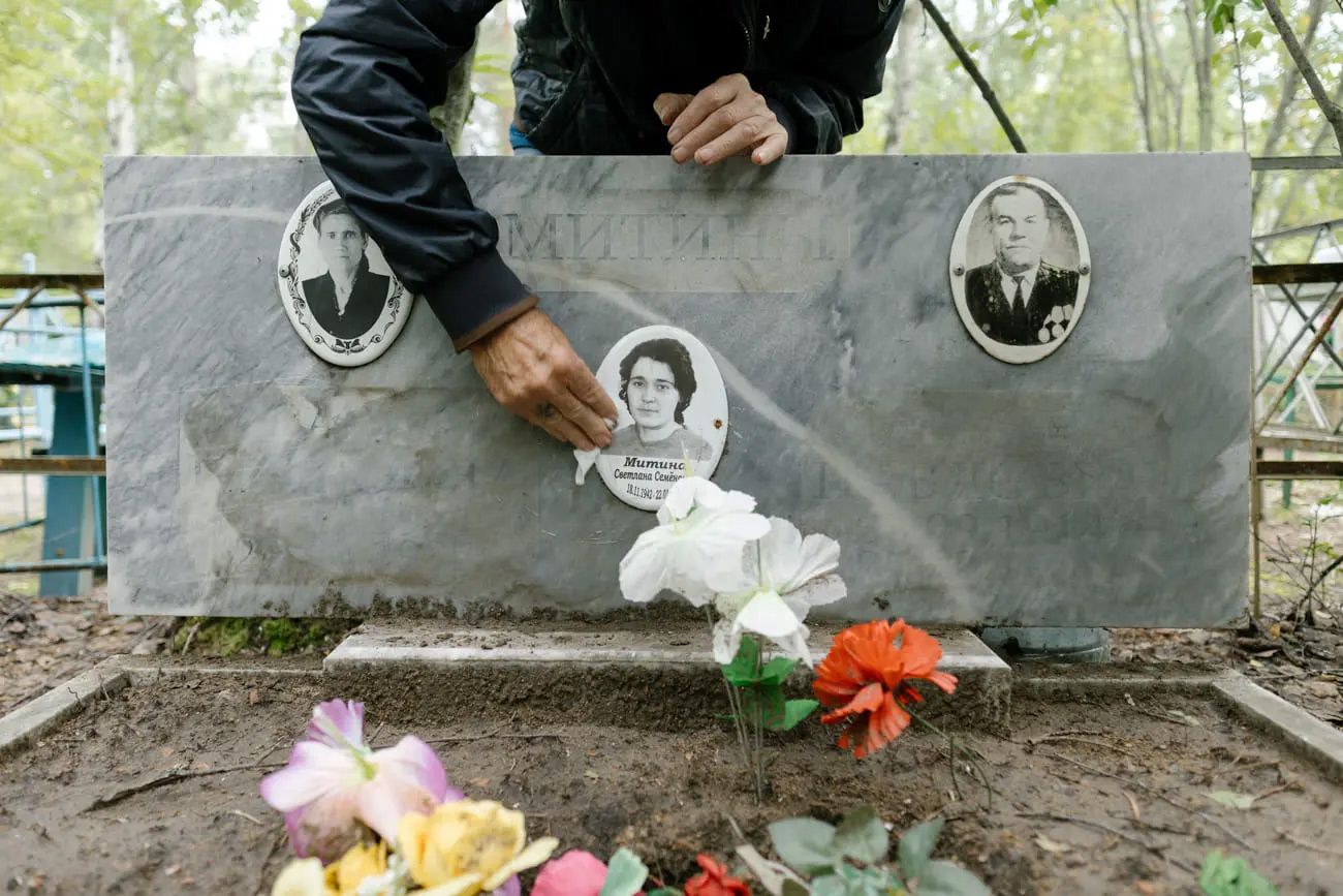 Владимир рассказывает, как после педагогического института сестра уехала в Воркуту работать в детском саду — видимо, из-за северных надбавок. Вместе с матерью она копила на квартиру, но в 90-е банк, где хранились сбережения, обанкротился — и «они все потеряли». В Воркуте было слишком холодно, Светлана прожила там всего год. Владимир показывает фотографию 23-летней сестры с подписью: «Воркута, 1965 год». Этот снимок теперь на надгробном медальоне на могиле Светланы.