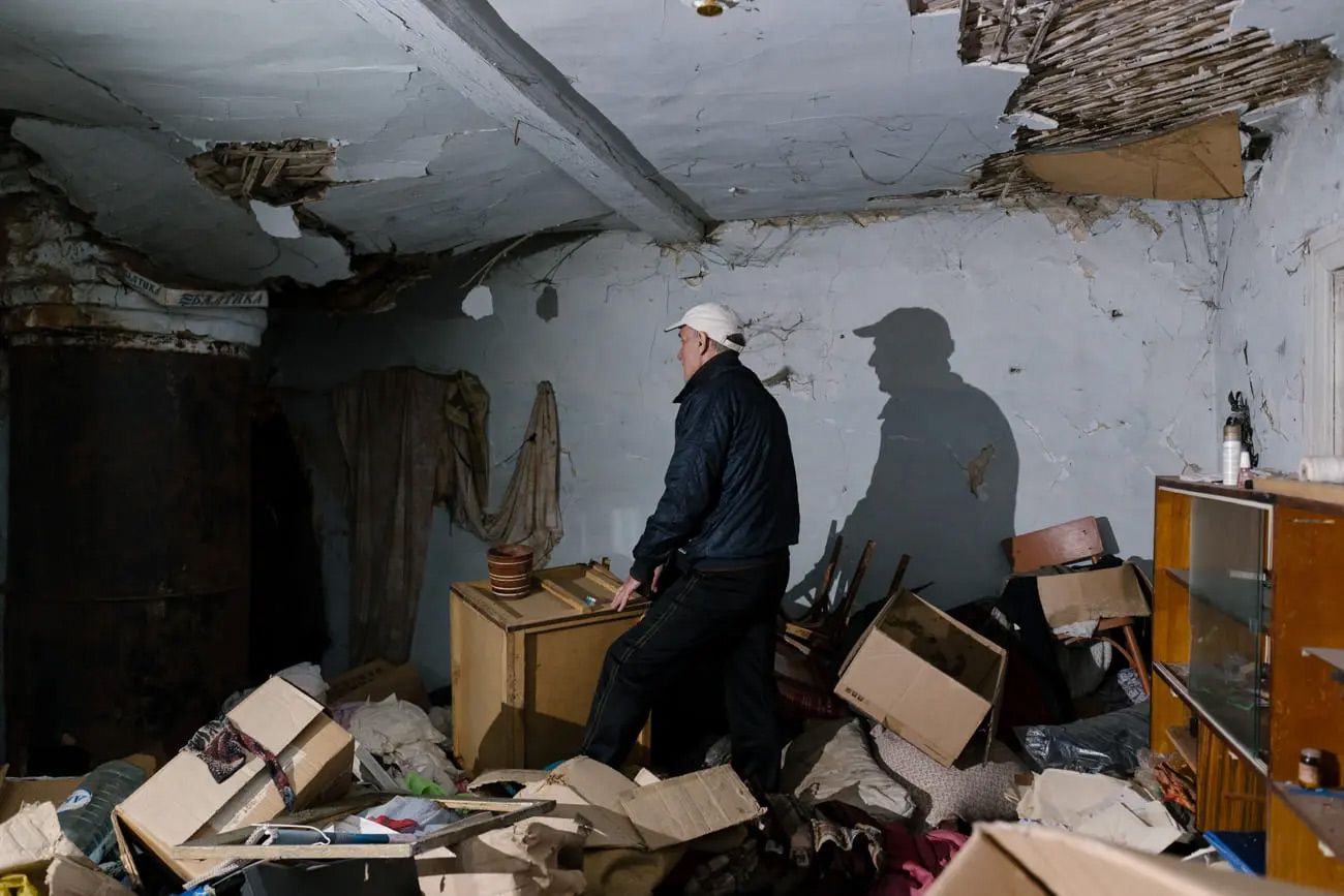 — Здесь холодильник был, шкаф, плита. В углу стоял газовый баллон. Машинка «Зингер» была. Все утащили на железо, — Владимир осматривает разгромленное жилище.
