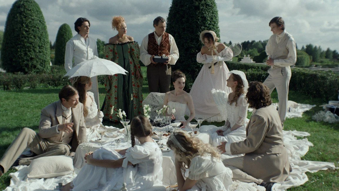 Стася Толстая — ученица Сергея Соловьева, что очевидно: воздушные сцены «подросткового рая» с венками из полевых цветов и свечением воды напомнят его «юношескую трилогию». Но акварельный соловьевский мир — с туманами и запахами — она миксует с яркой палитрой «Бриджертонов». Феликс Умаров со своим «Пророкам» тоже вспомнится, но скорее как тенденция: поиск молодых киноавторов современных созвучий и форм для классики.