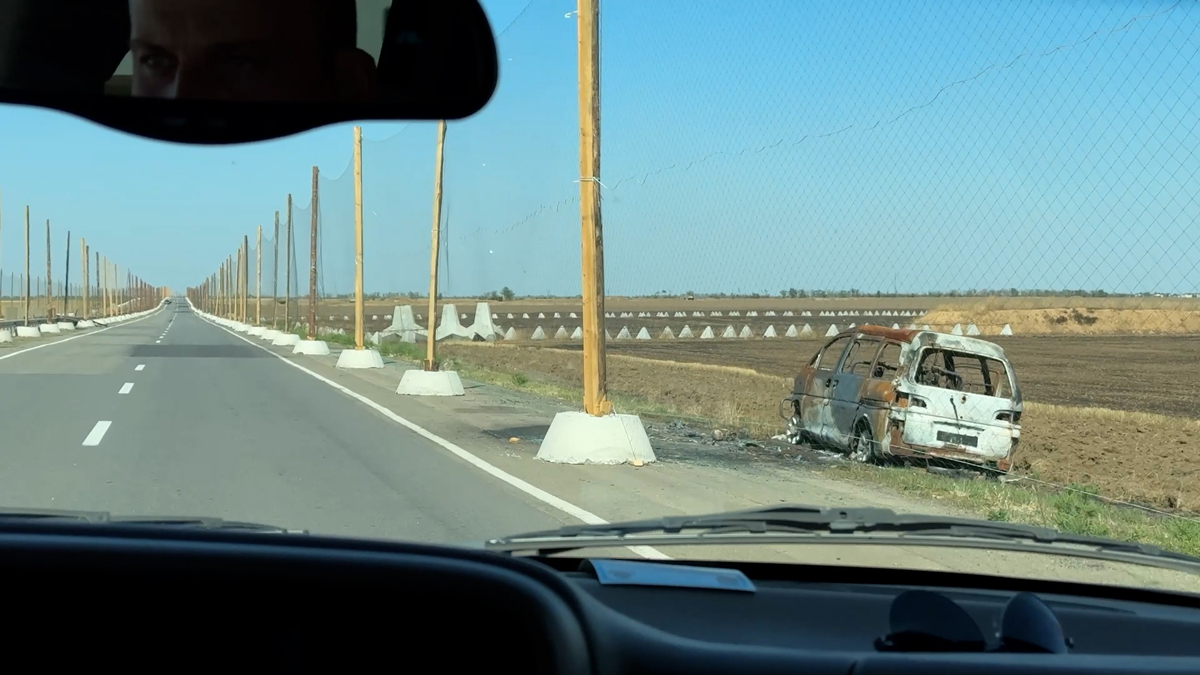 Скорость сбавляют, только добравшись до материковой части города. В это же время россияне обстреливают центральный район, приходится менять маршрут.