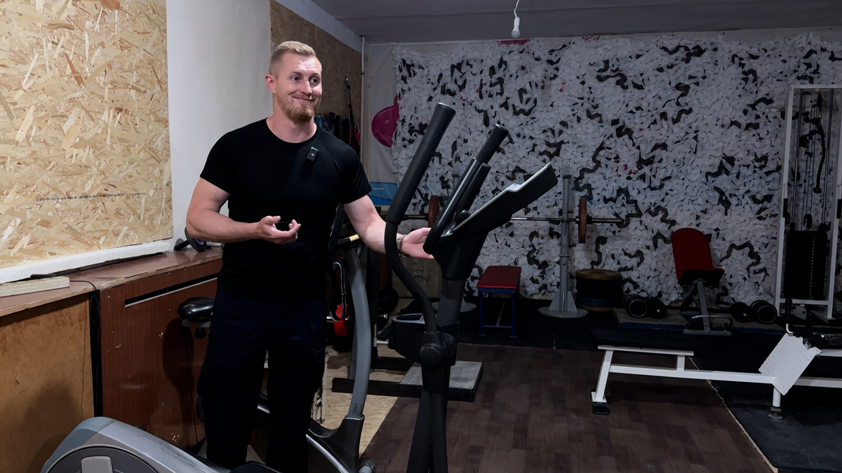 «Наши волонтеры сделали всё своими руками. Есть нормальная вентиляция, девушкам еще тренажеры поставим, обновим, степы будут, телевизор найдем на стену. Наша администратор Олена восстанавливается после ранения. Делает здесь упражнения, другие девушки тоже могут приходить», — показывает зал волонтер.