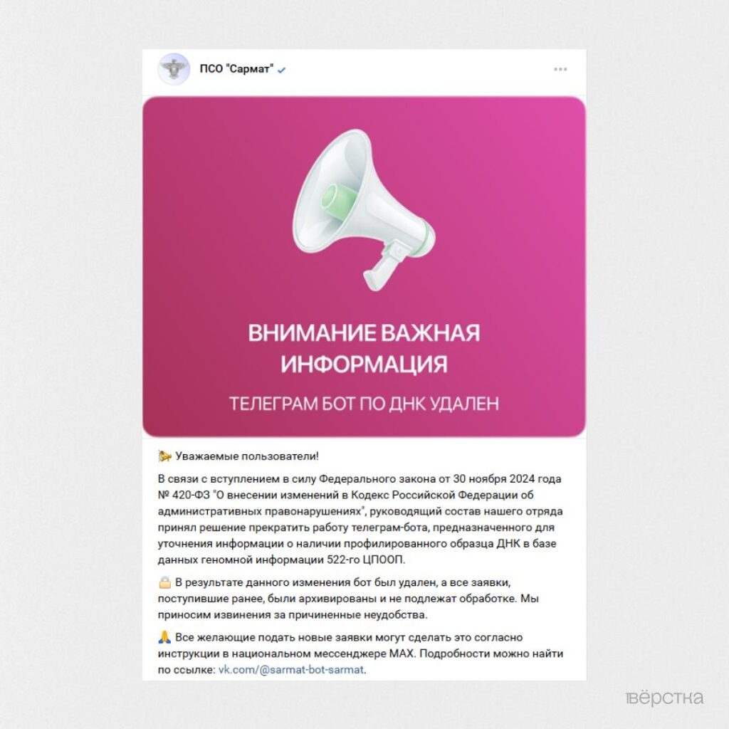 в Ростове-на-Дону, удалил бот, позволяющий узнать статус ДНК-экспертизы. Теперь все заявки на получение геномной информации принимаются только в «национальном мессенджере». Такое решение объяснили вступлением в силу закона об ужесточении ответственности за нарушения в области персональных данных.