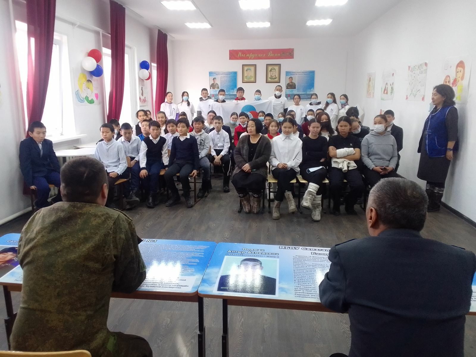 В декабре 2022 года встретиться с учениками школы приходил участник войны в Украине Монге Куулар. Рассказывая детям о "героях Отечества", он сидел за партой с портретом Салгала Кызыл-Таса.