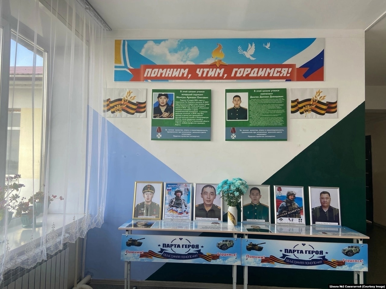 На стене школы также портреты лейтенанта артиллерии Долаана Донгака, фермера Белека Биче-Оола, воевавшего в составе ЧВК "Вагнер", добровольцев-контрактников Марата Шулуу-Маадыр и Эртине Ондар. Однако погибших из села Самагалтай гораздо больше, чем портретов – не менее 17 человек. Например, в июле 2024 года в Украине погиб 28-летний Аяс Эренчин, который отправился на фронт из колонии.