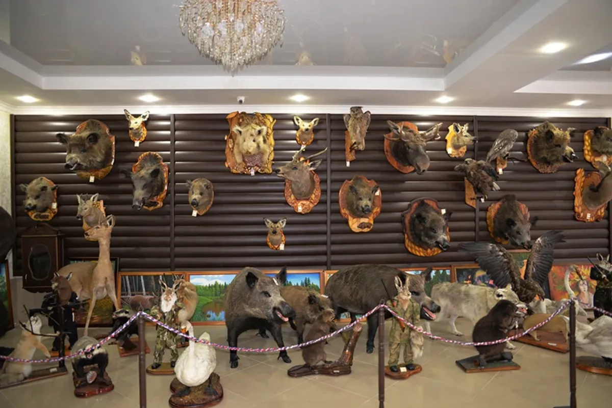 В магазине также продается спецодежда, мангалы, наборы для каминов, мебель, чучела животных и продукты питания.