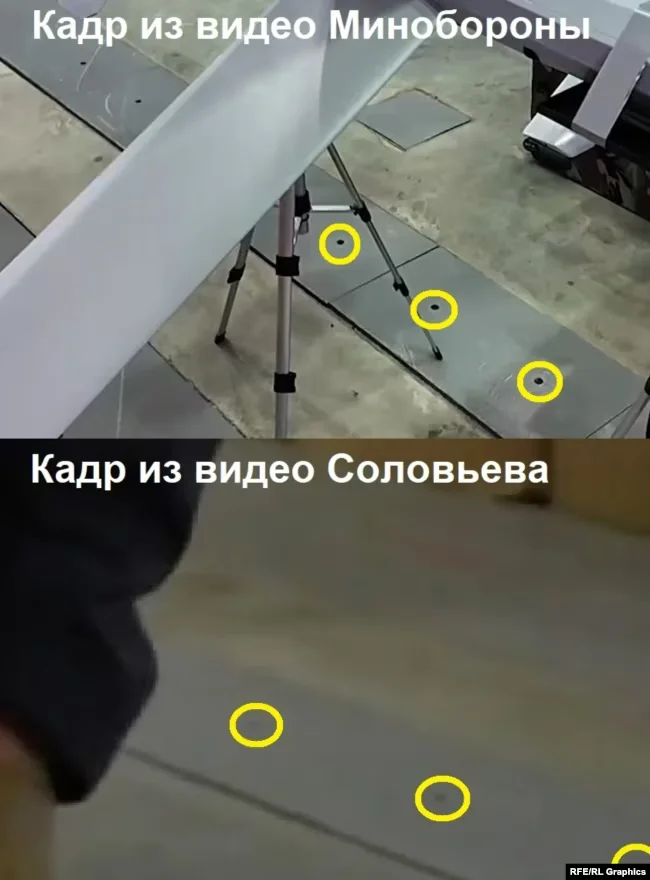 Скриншоты из видео Минобороны России и Владимира Соловьева. Коллаж: «Радио Свобода»