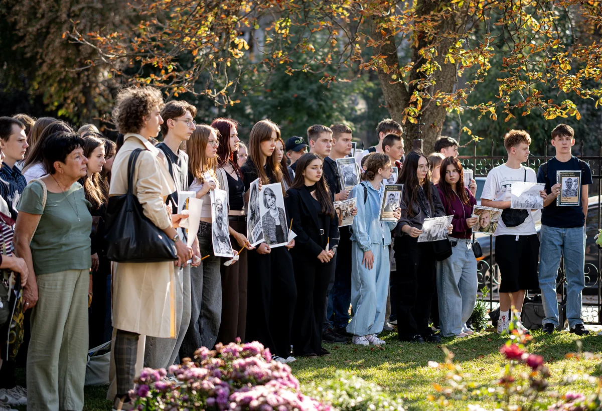 Панихиду служит глава Православной церкви Украины, митрополит Епифаний. Настоятель церкви, священник Стефан Яремчук поименно перечисляет «невинно убиенных и замученных украинских журналистов Георгия, Павла, Максима, Веру, Александру, Викторию…» Список кажется бесконечным. Студенты, выстроившись в шеренгу, держат черно-белые фото.