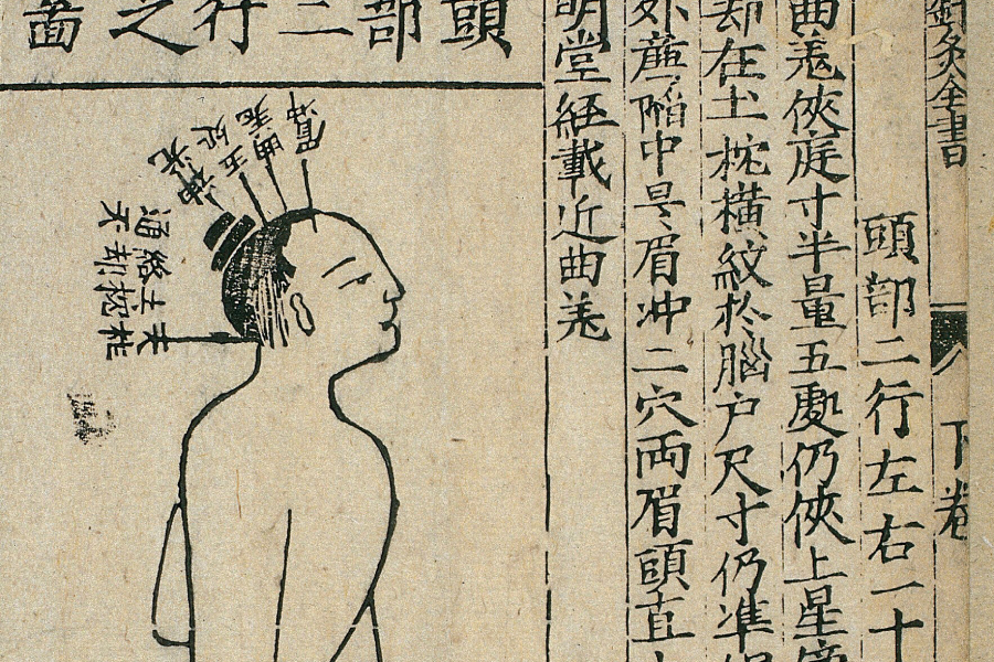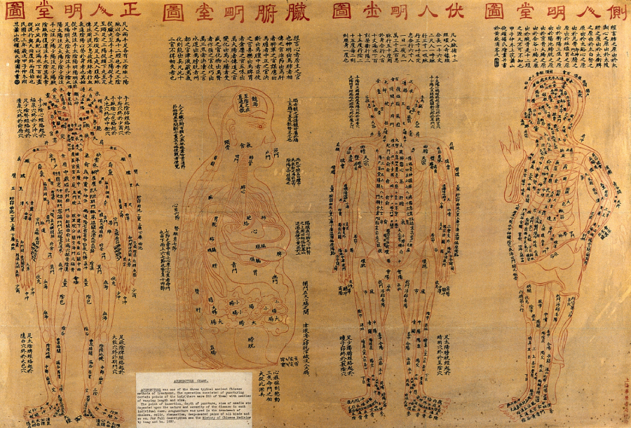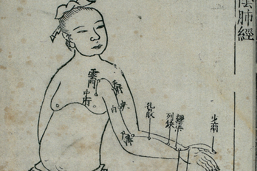 Человеческое тело с изображением кровеносной системы и акупунктурных точек. Цветная ксилография китайского художника. Фото: Wellcomeimages.com