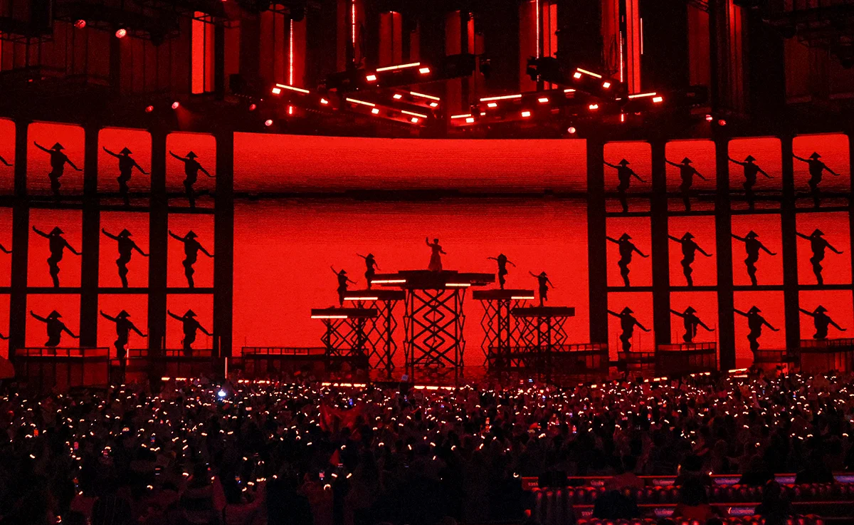 Организаторы очень старались показать, насколько продвинутые в России технологии: сцена и зрительный зал были переполнены всевозможными световыми эффектами, а каждый конкурс представлял так называемый аватар — гигантская голограмма, созданная с использованием дополненной реальности.
