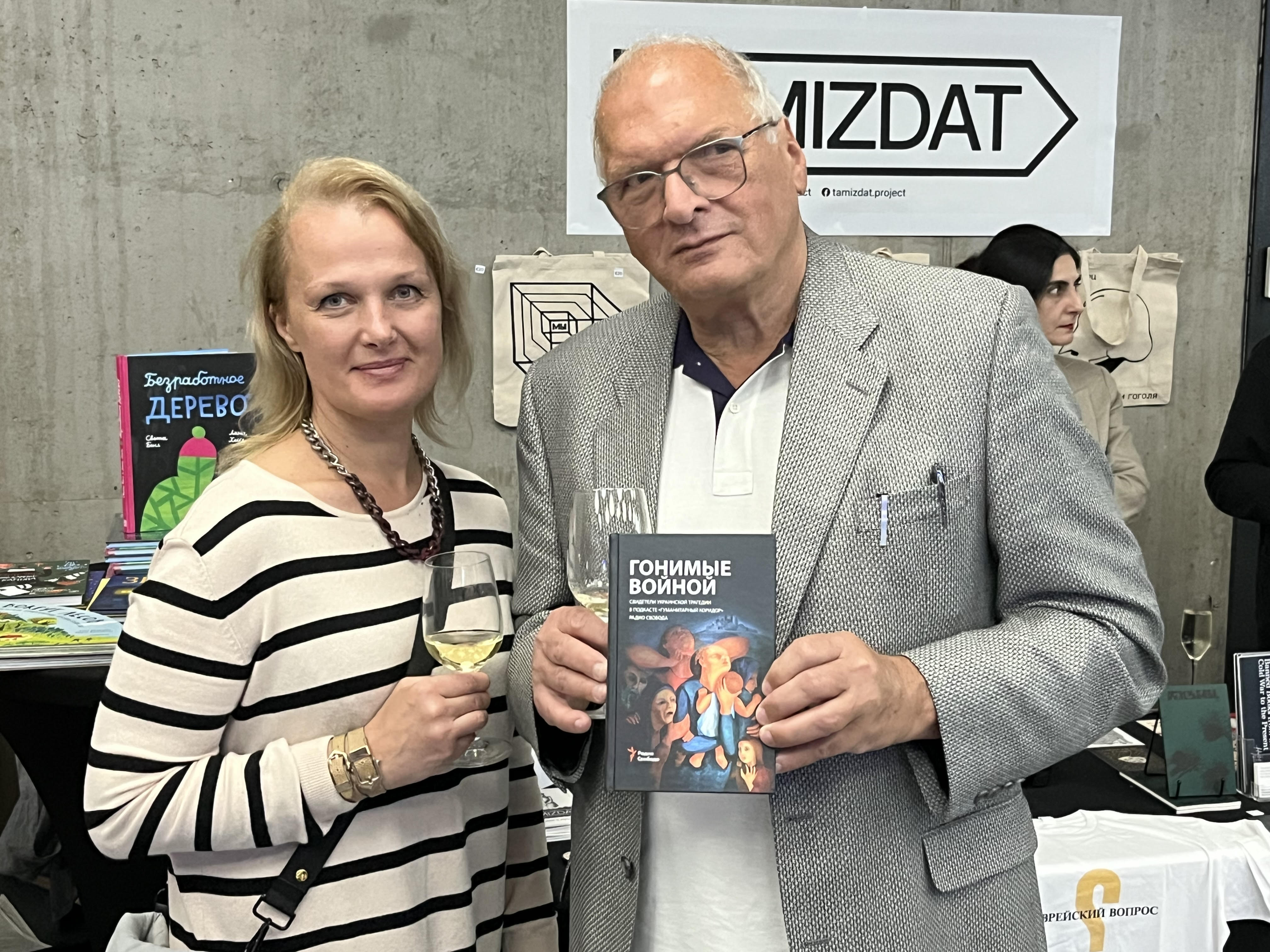 Также у нас в этом году впервые был опыт, когда мы объединились с белорусским тамиздатом. Это было непросто, но мы всё равно довольны результатом, потому что, как мне кажется, это очень важно. Мы не одни находимся в состоянии изгнания, цензуры. Белорусы находятся в этой ситуации с 2020 года. Их опыт, возможно, в чём-то уже гораздо более ценен и интересен для русскоязычных издательств, которые сейчас находятся в изгнании. Поэтому их участие для нас было важным. И опять же хочу заметить, что в воскресенье, когда была презентация научного сборника, изданного Славянской библиотекой, это тоже для нас было неожиданно, насколько много интересующихся темой белорусов в изгнании не только сейчас, но и историей белорусов-эмигрантов столетней давности. Мы можем просто понять, насколько мы были с ними в этой истории.