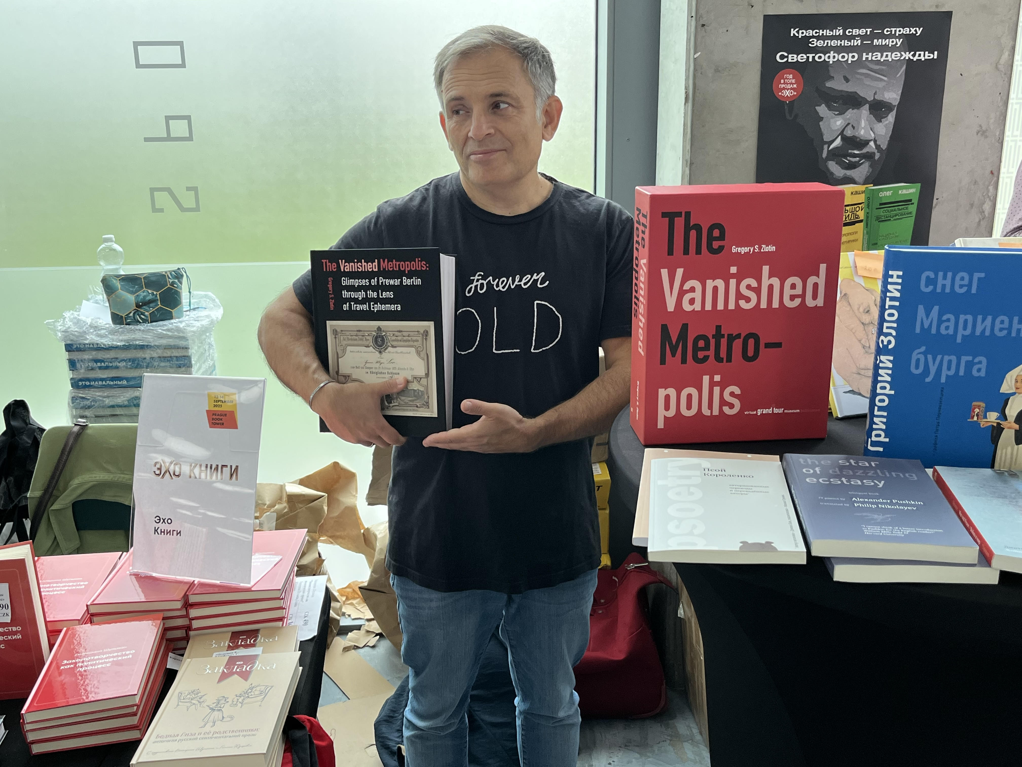 Желая наконец предложить миру, он обратился к своему другу Григорию Злотину, живущему в Лос-Анджелесе (Злотин историк, в частности, историк Германии), и Злотин предложил сделать книгу о Берлине, основываясь на этой коллекции. То есть показать туристический Берлин сквозь призму этой коллекции, а это значит Берлин трёх эпох: Берлин имперский, когда возникла собственно империя и нужно было строить из сравнительно небольшой столицы Пруссии столицу империи, затем Веймар и время нацизма. Все эти три времени отражены в коллекции. То есть это период с конца XIX века и до начала Второй мировой войны.
