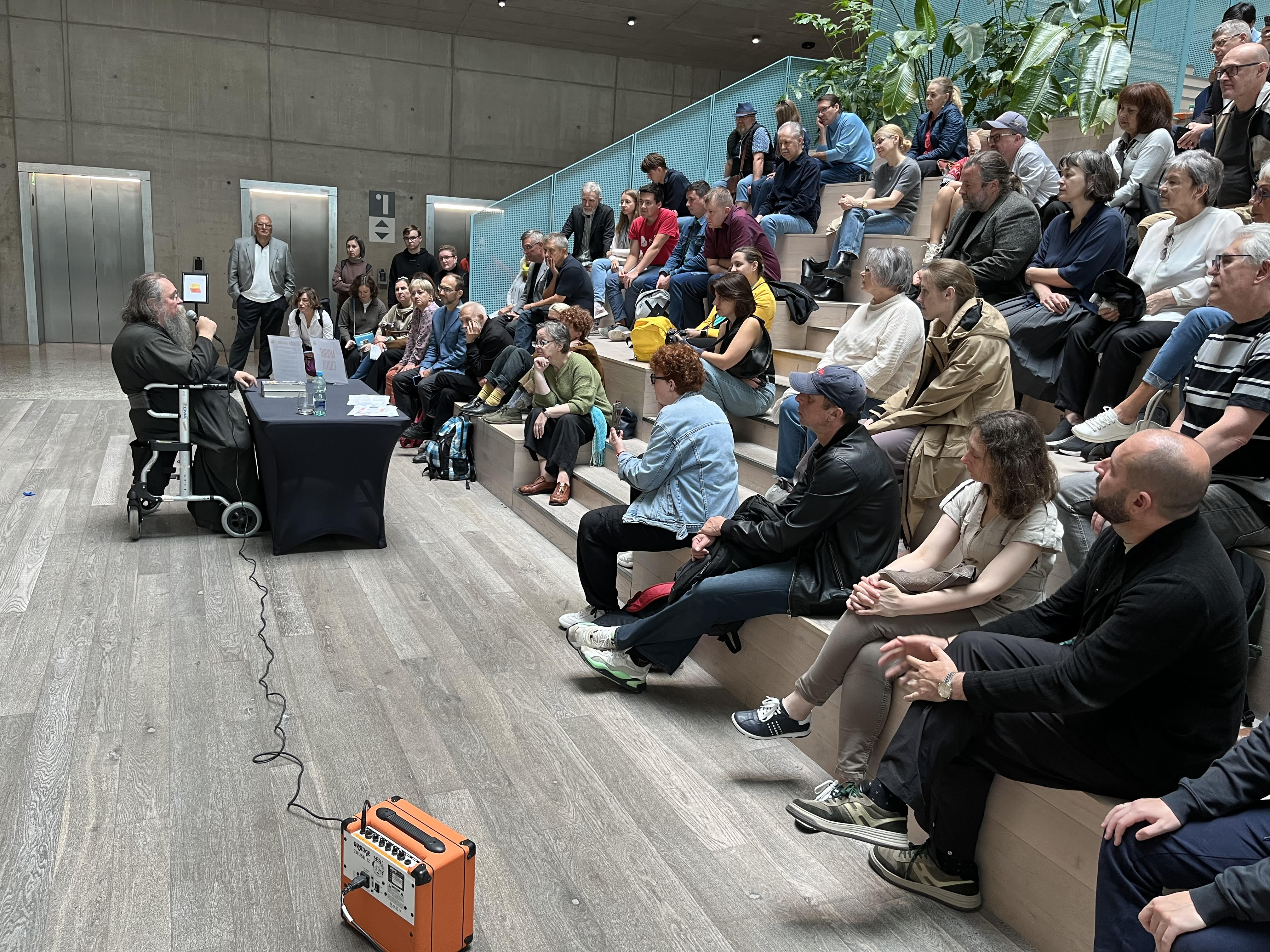 Фоном наших разговоров была война, агрессия России против Украины. Чувствуют ли ответственность носители русской культуры, покинувшие свою страну, за военные преступления России? Что они выбирают: пассивное осуждение агрессора или активную помощь Украине? Существует ли патриотизм вне «патрии»?